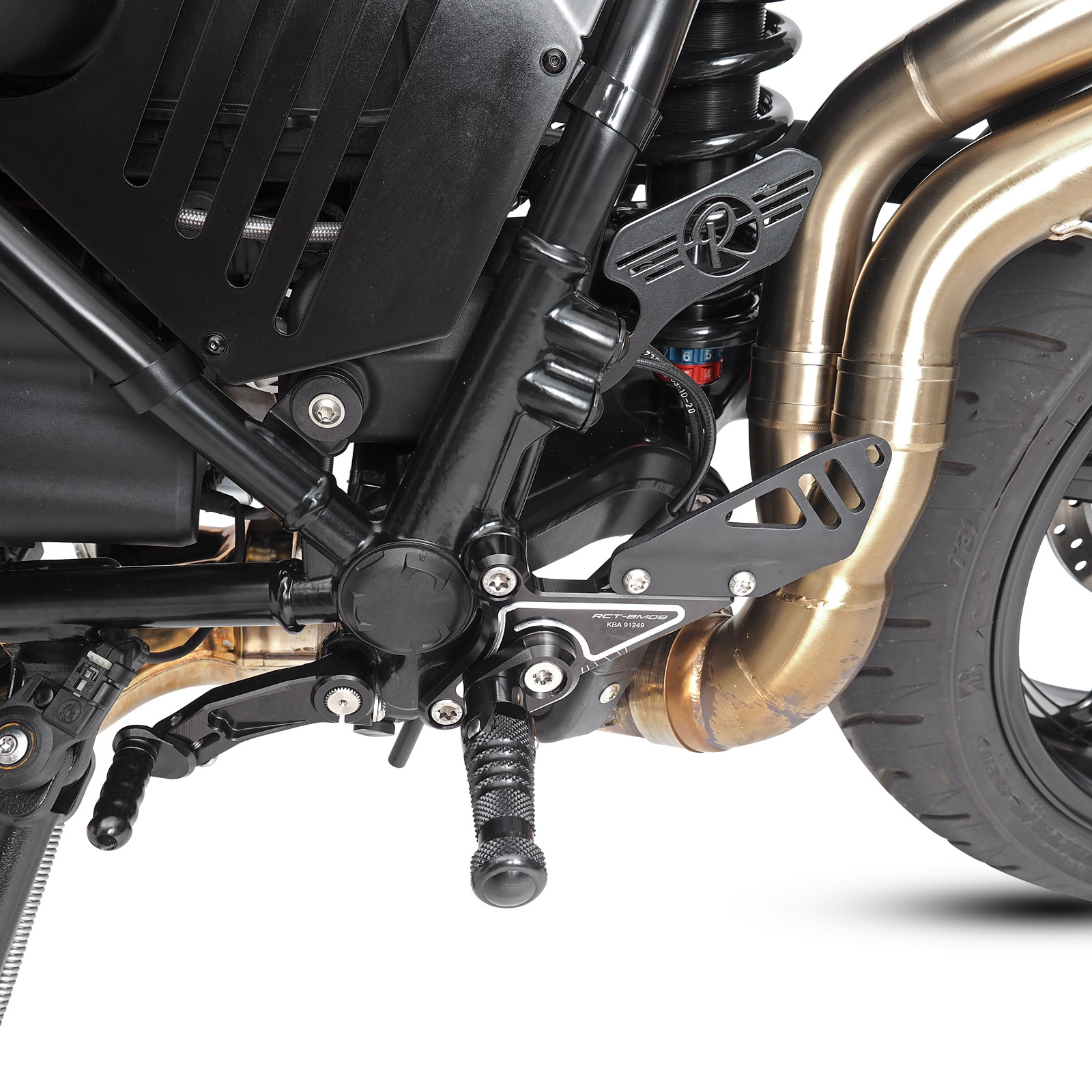 Hochwertig, funktional und individuell anpassbar – die Gilles Fußrastenanlage für die BMW R9T / R12 hebt sich klar von der serienmäßigen Gussanlage ab.