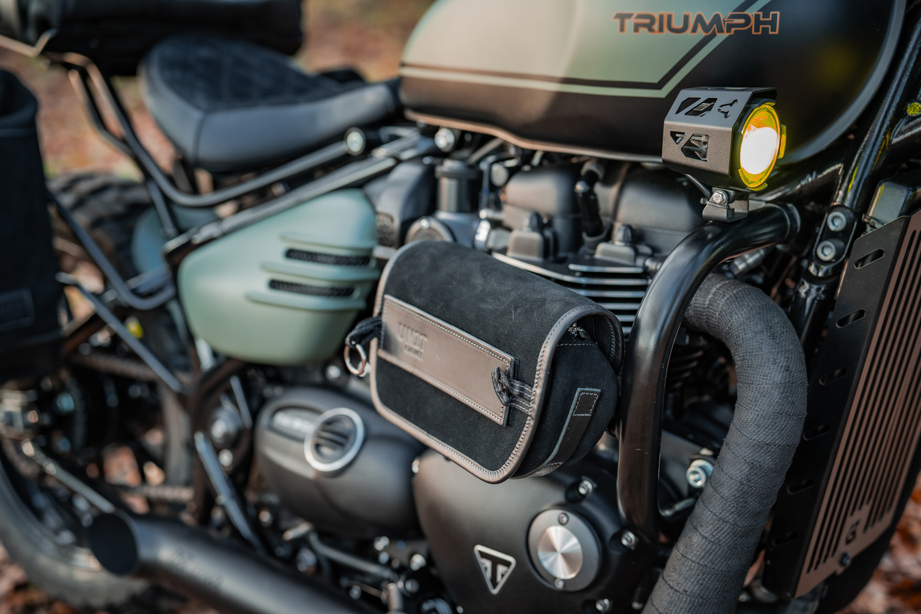 Für die Triumph Heavy Duty Sturzbügel bieten wir auch noch eine extra Halterung für die Tasche an (siehe Zubehör Artikel unterhalb dieser Beschreibung).