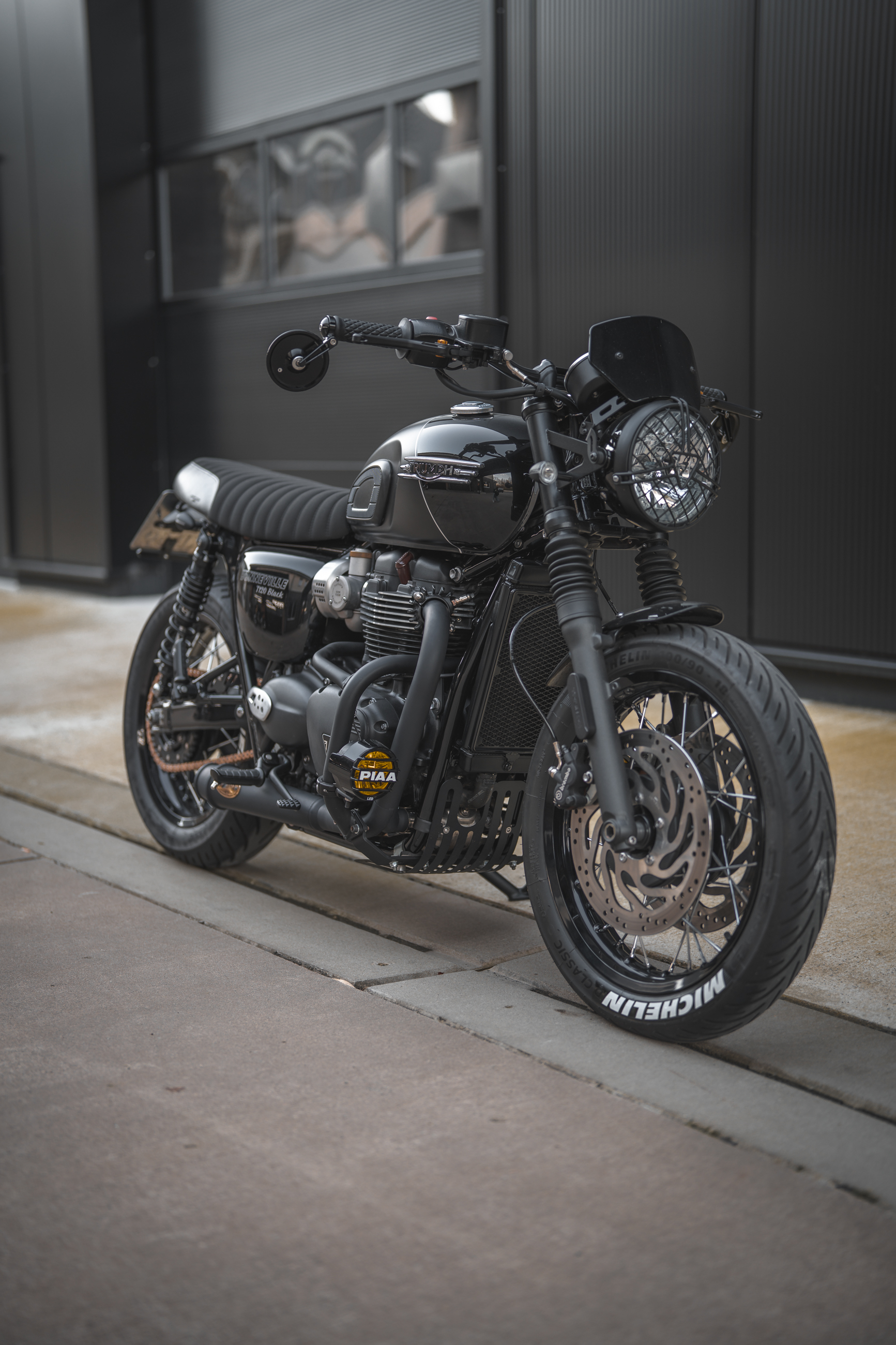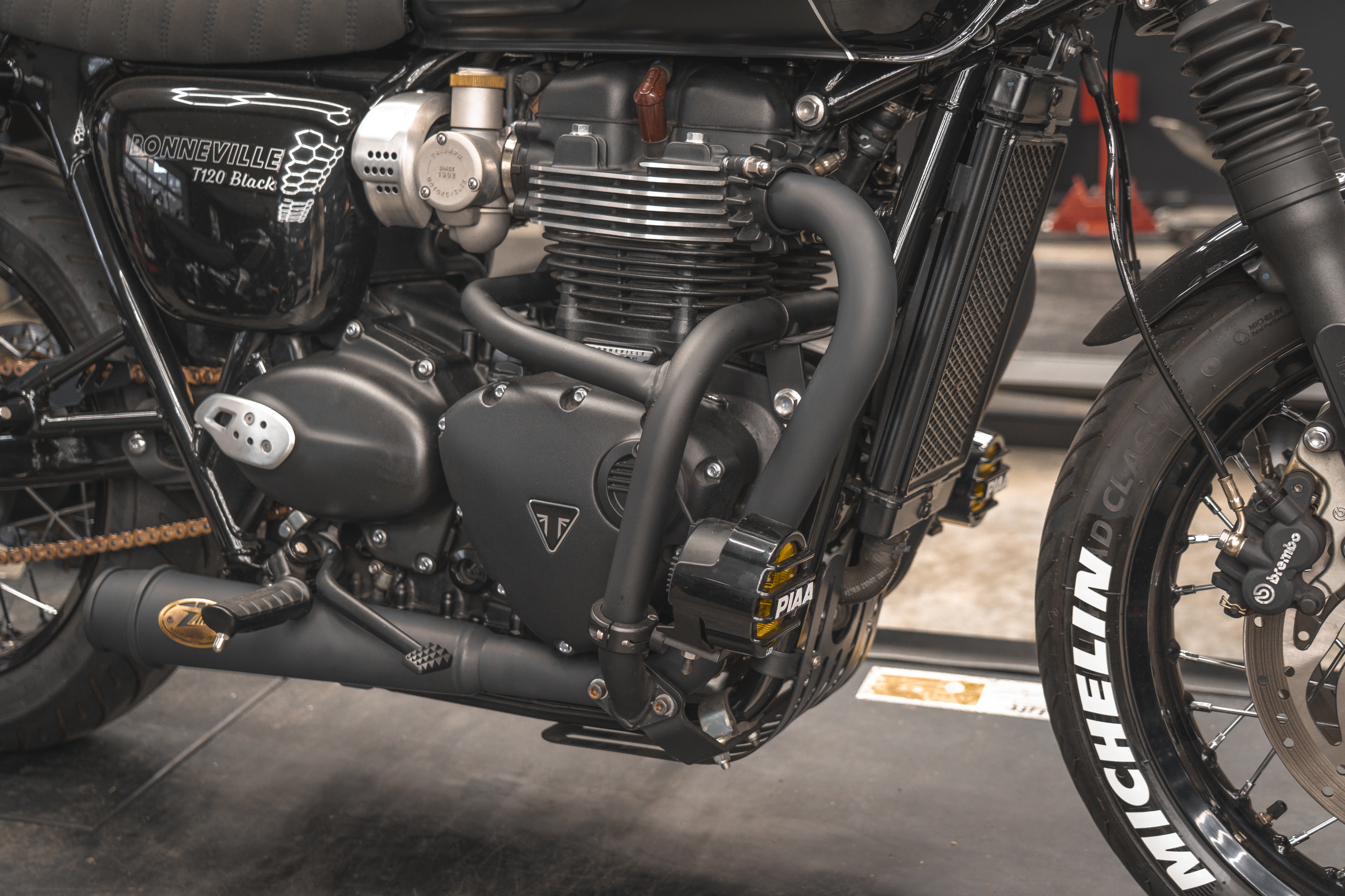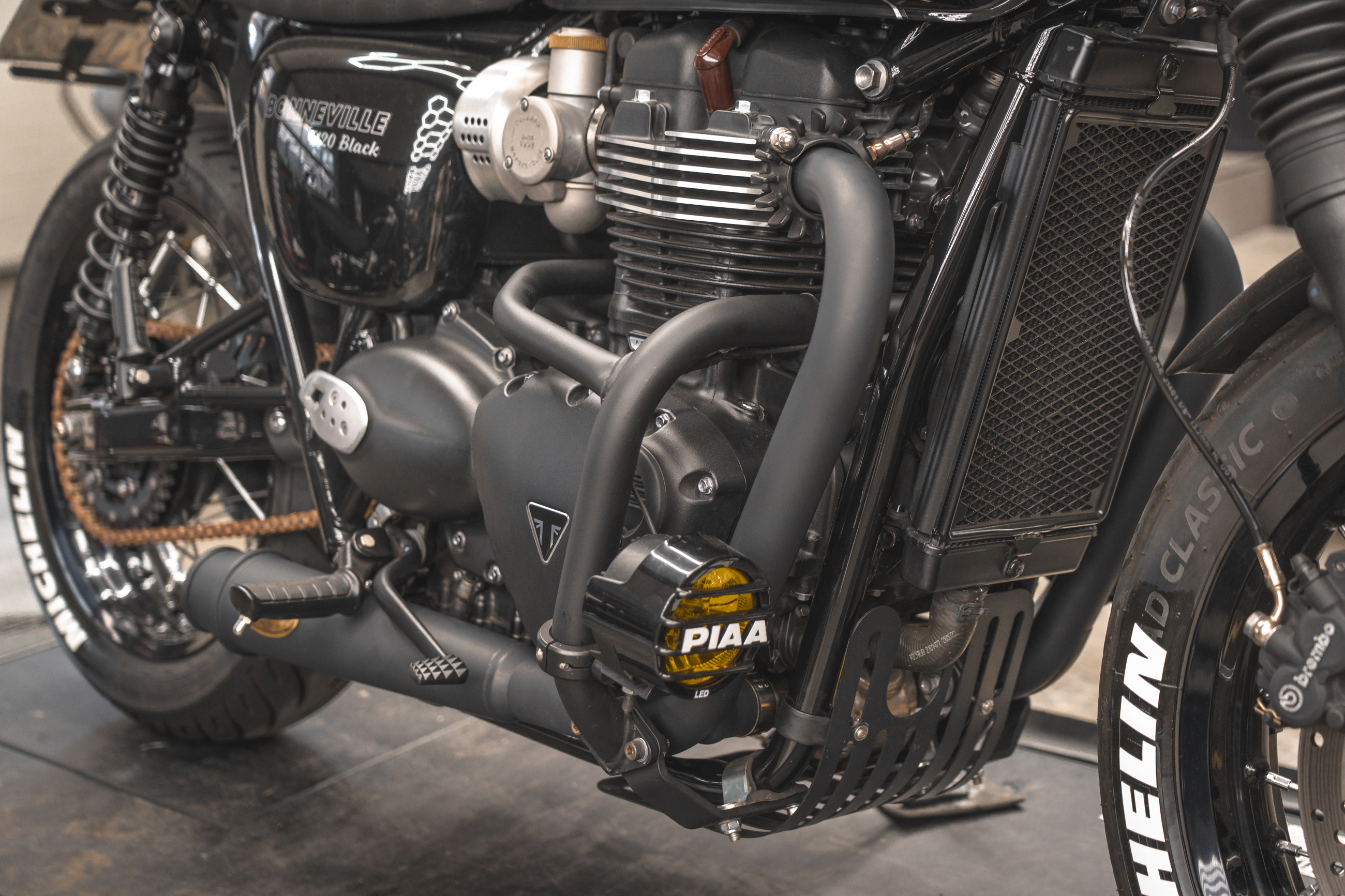 Durch die hintere Verstrebung wirken die Bügel deutlich kräftiger als viele andere Systeme. Genau der Look, den man an einem Motorrad das in Richtung Scrambler / Off Road Bike umgebaut wird möchte – egal ob Bonneville, Thruxton, Speed Twin, Bobber, Speedmaster oder Street Twin.