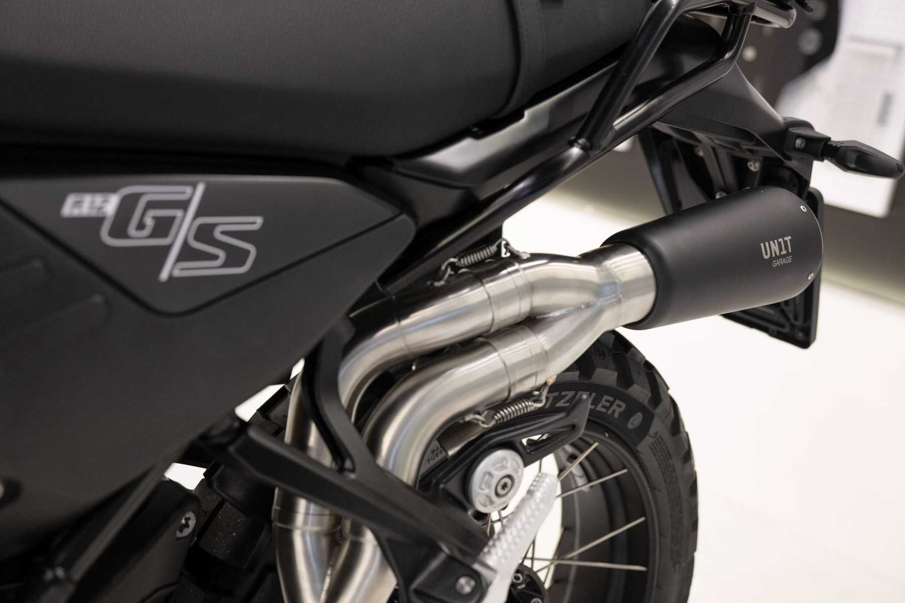 If you want even more sound, we recommend the Unit Garage titanium manifold without KAT. As the R12 models are equipped with a very large catalytic converter ex works, which also swallows up a lot of noise, the motorbike cannot get much louder without a different rear silencer.