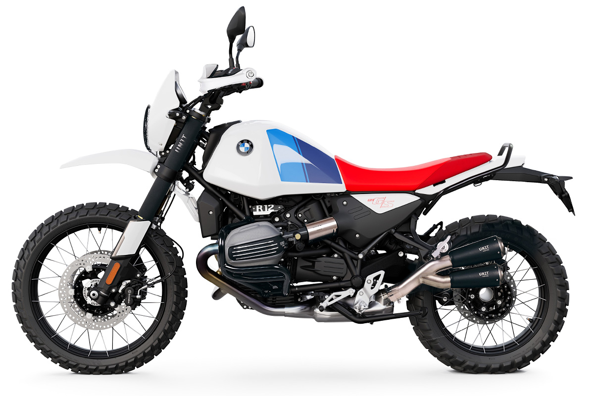 If you want even more sound, we recommend the Unit Garage titanium manifold without KAT. As the R12 models are equipped with a very large catalytic converter ex works, which also swallows up a lot of noise, the motorbike cannot get much louder without a different rear silencer.