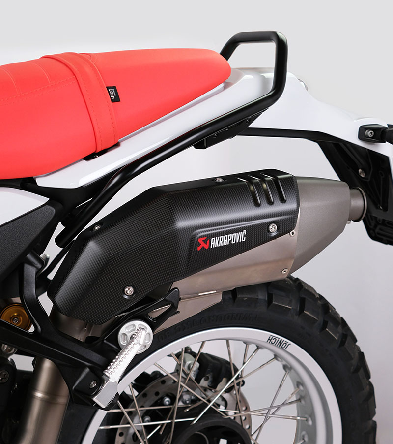 In addition to the exhaust, there are other classic parts such as a retro tank / tail / lamp mask that emphasise the style.