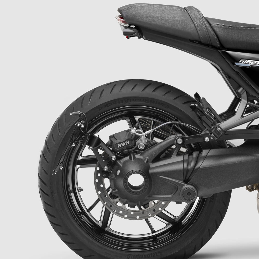 From the noble forge Rizoma Italy there are very high-quality, lateral aluminium number plate holders for the R12 nineT in a complete set including new rear under fairing / number plate light & indicator plugs.