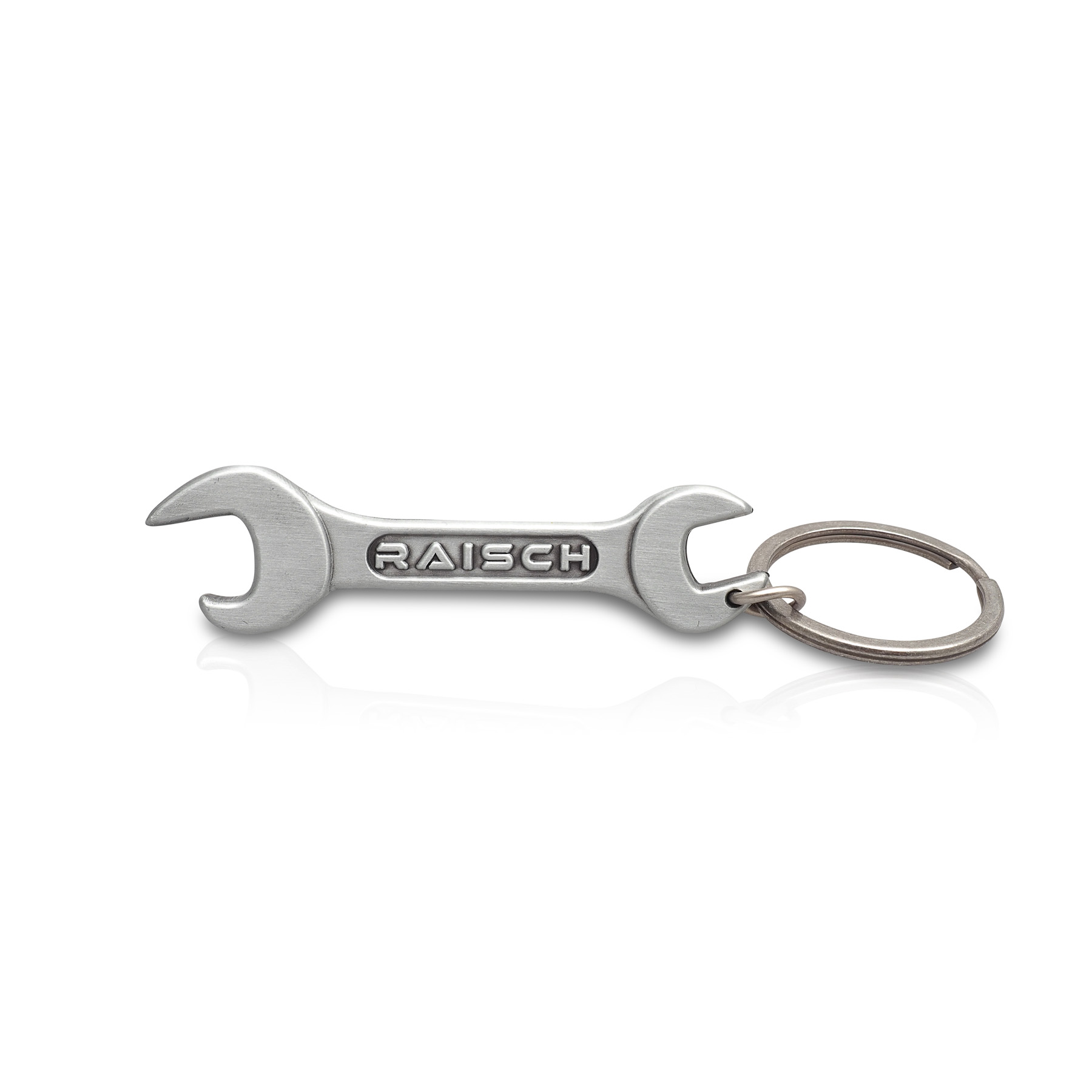 The Classicbike-Raisch key fob and bottle opener in a wrench design.