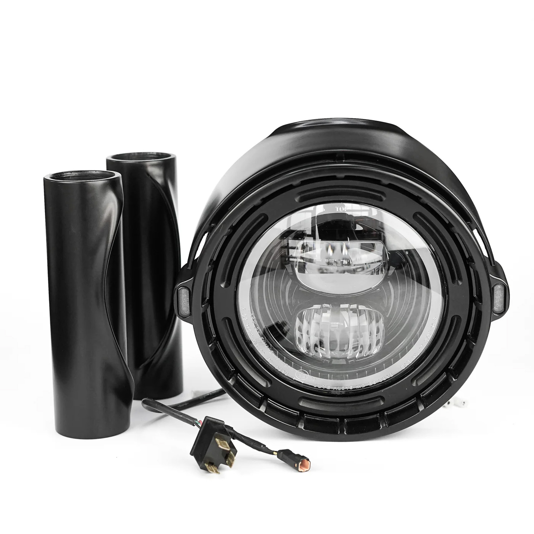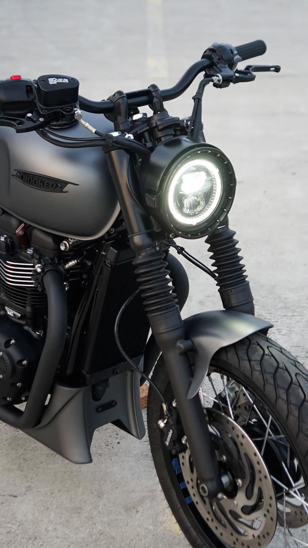 Crooked LED headlight kit including lamp mask, fork covers & LED indicators - for Triumph Bonneville T100 & T120