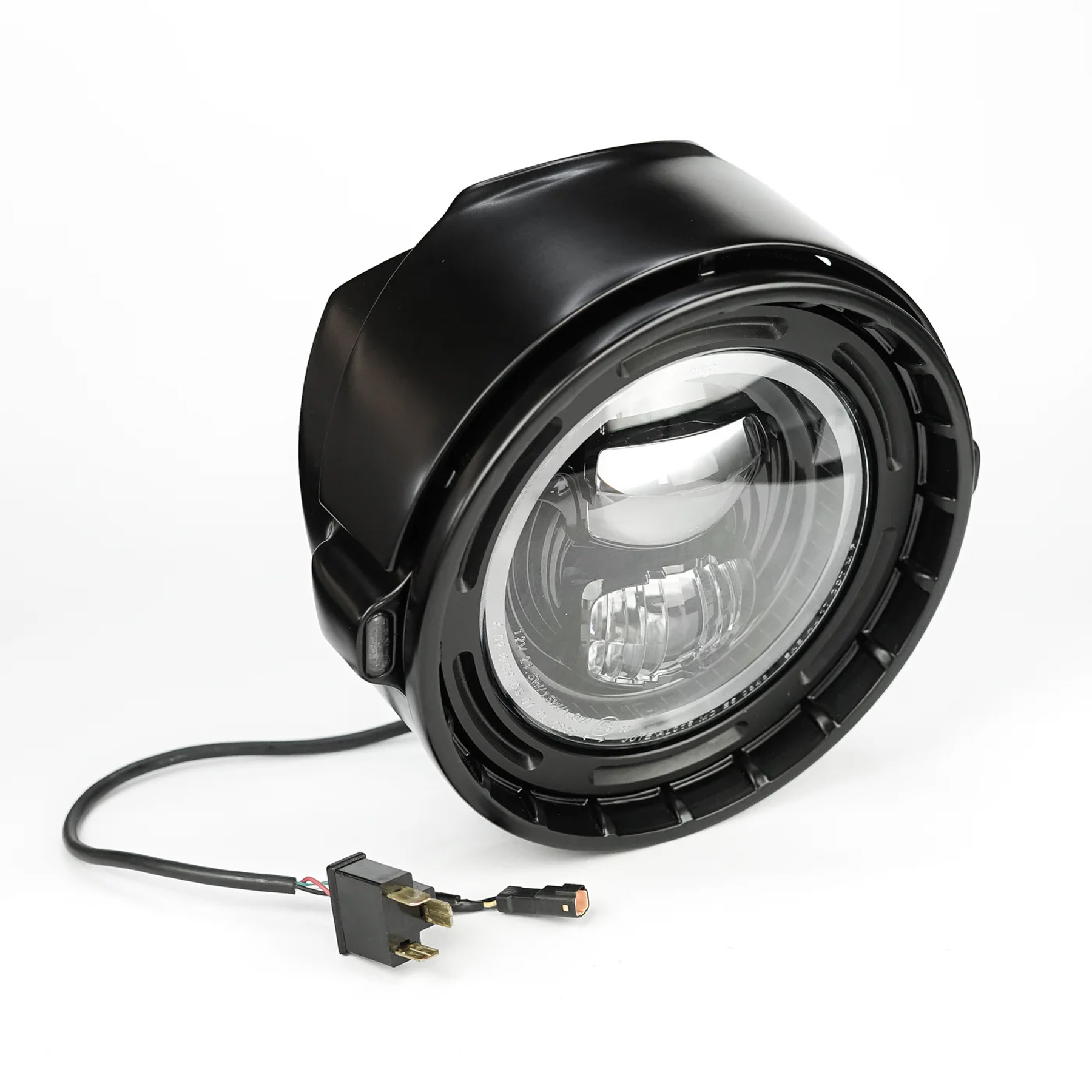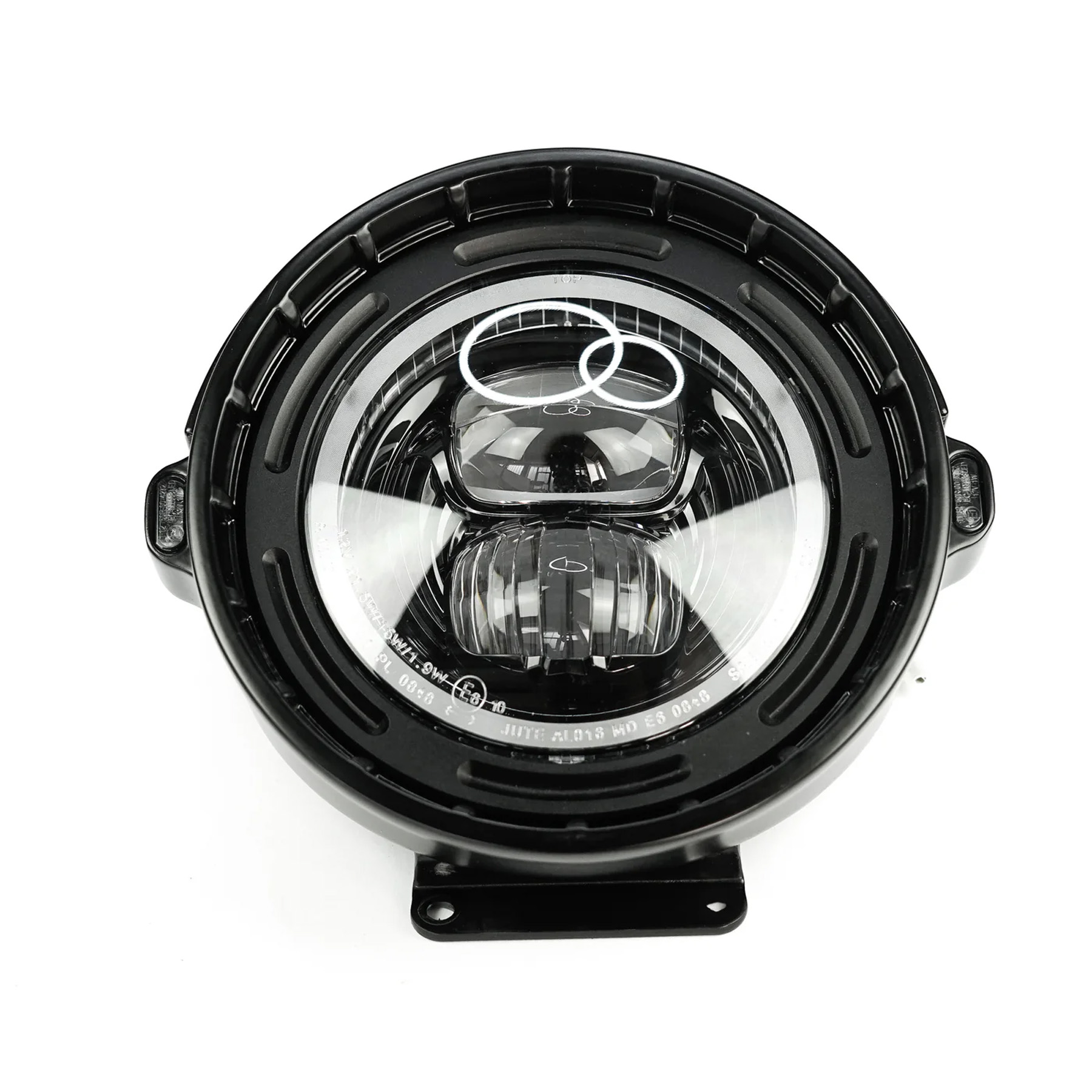 The conversion of the headlight ONLY works together with a small Motogadget speedometer.