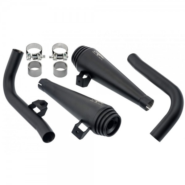 These chic and short rear mufflers are made of high quality stainless steel and have as a contrast the aluminium turned end caps.