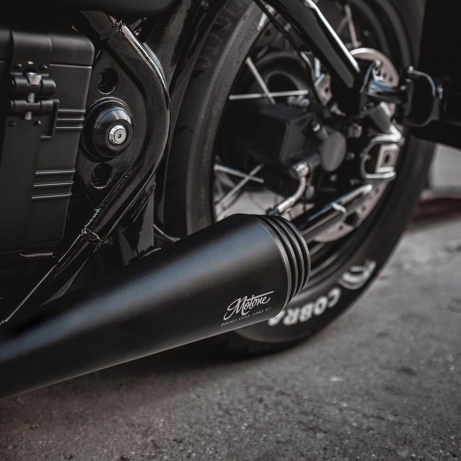 Saturn Style stainless steel exhaust system for water cooled Triumph modern classic Bikes.