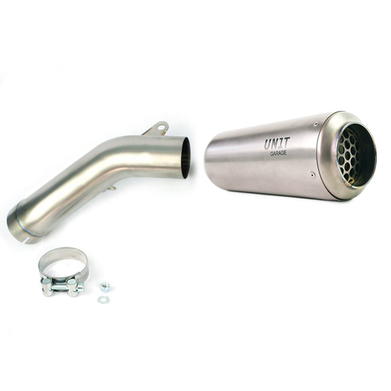 Los escapes de Unit Garage están muy bien hechos y además suenan más que bien, cosa que no pensarías a primera vista con un silenciador tan pequeño. Pero realmente lo hacen. Un bajo realmente agradable y gutural, amortiguado.