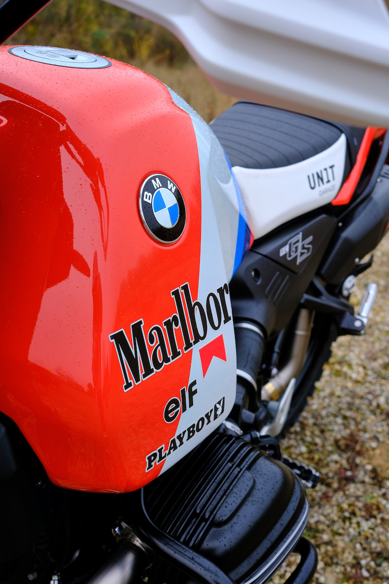 Depósito de combustible sobredimensionado Unit Garage para BMW R12 G/S en diseño retro Dakar.
