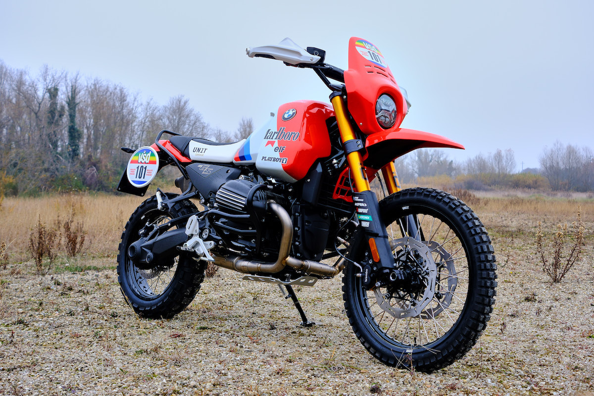 El depósito más grande cambia significativamente las proporciones de la R12 G/S y proporciona el típico aspecto robusto de rally. En combinación con otras piezas adicionales retro y Dakar, como la máscara de la lámpara, guardabarros, escape o protectores de horquilla, se crea un aspecto general armonioso - muy cerca de las motos clásicas del desierto de antaño.