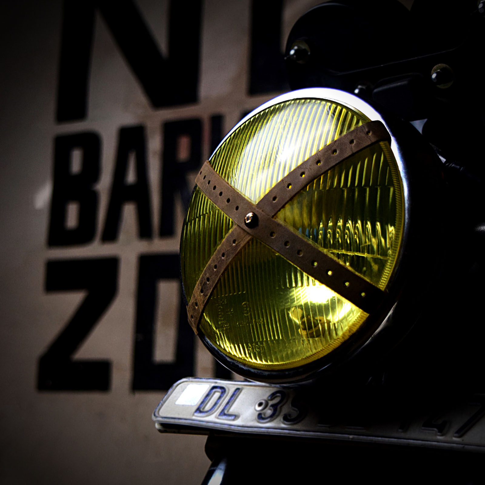 Al estilo de los antiguos cafe racers clásicos se fabrican estas correas de cuero. Quién no conoce las antiguas Cafe Racers con una cruz en el faro. La solución aquí es un poco más elegante con una correa de cuero hecha a mano (opcionalmente en versión perforada o sin perforar).