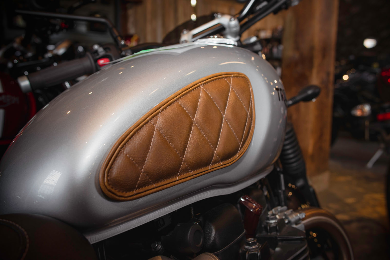 Hermosas rodilleras de cuero, con diseño de rombos para el depósito de todas las motos Triumph Modern Classic refrigeradas por agua.