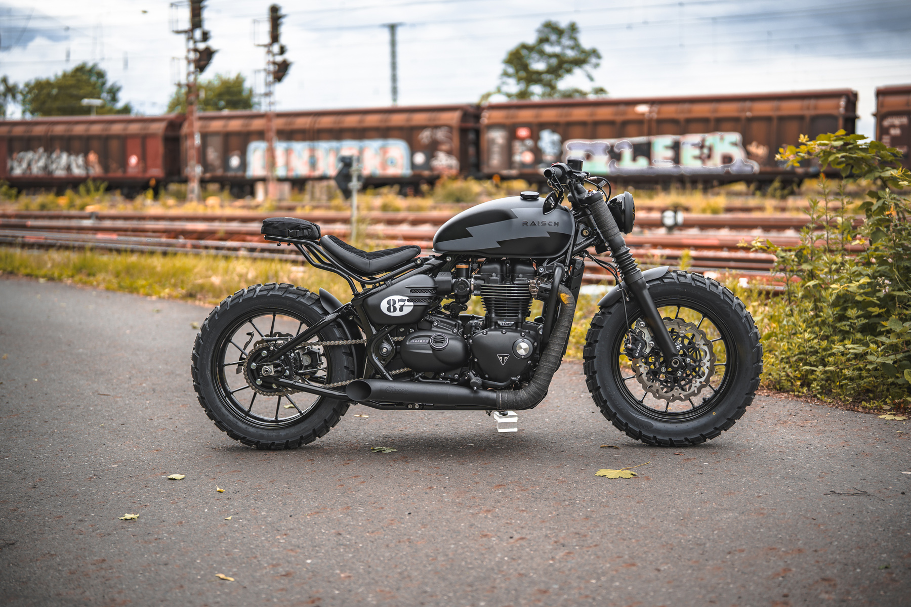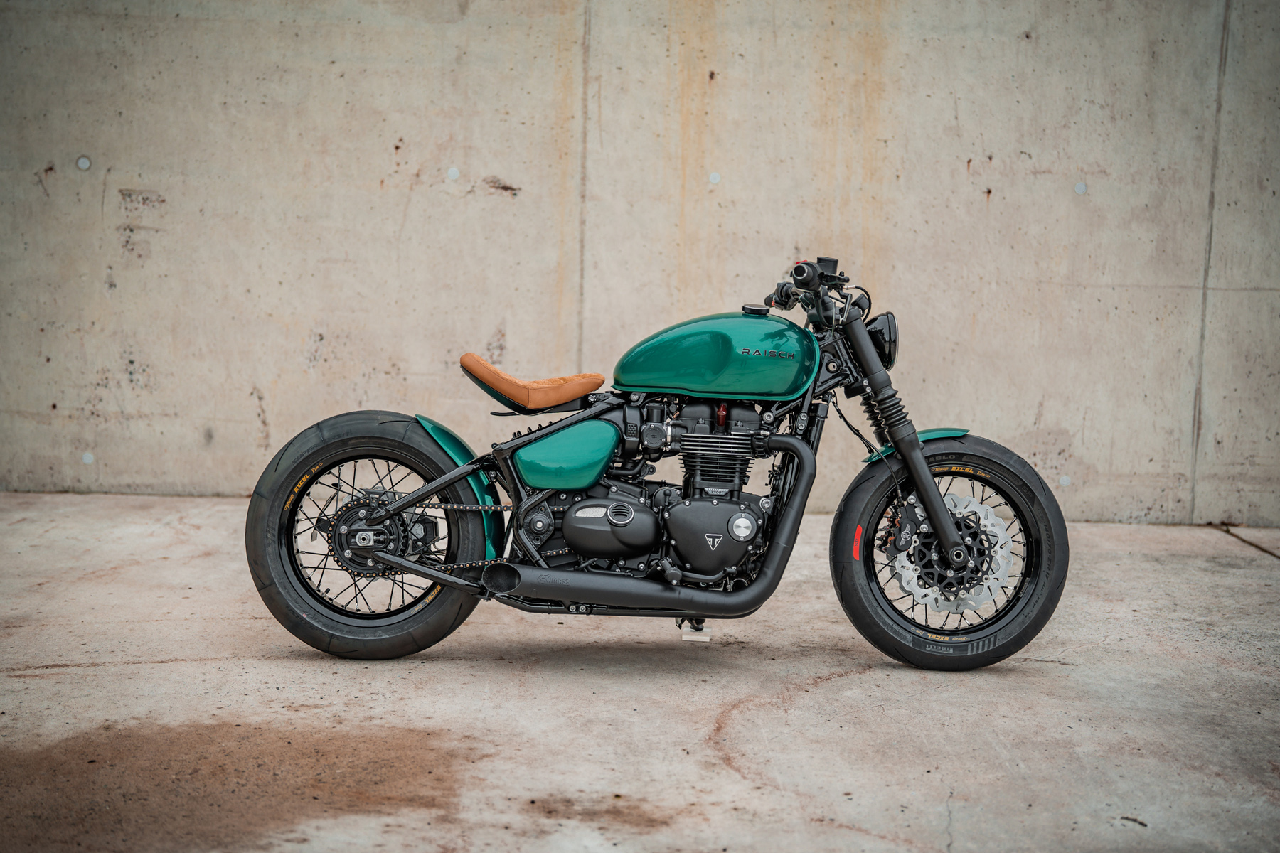 Los tubos laterales son, en nuestra opinión, los mejores tubos de escape para una Bobber. Son bonitos y cortos, liberando la parte trasera de la moto. Además, los colectores mucho más gruesos que los originales, así como los silenciadores traseros cortos y robustos, hacen que la Bobber parezca más robusta.
