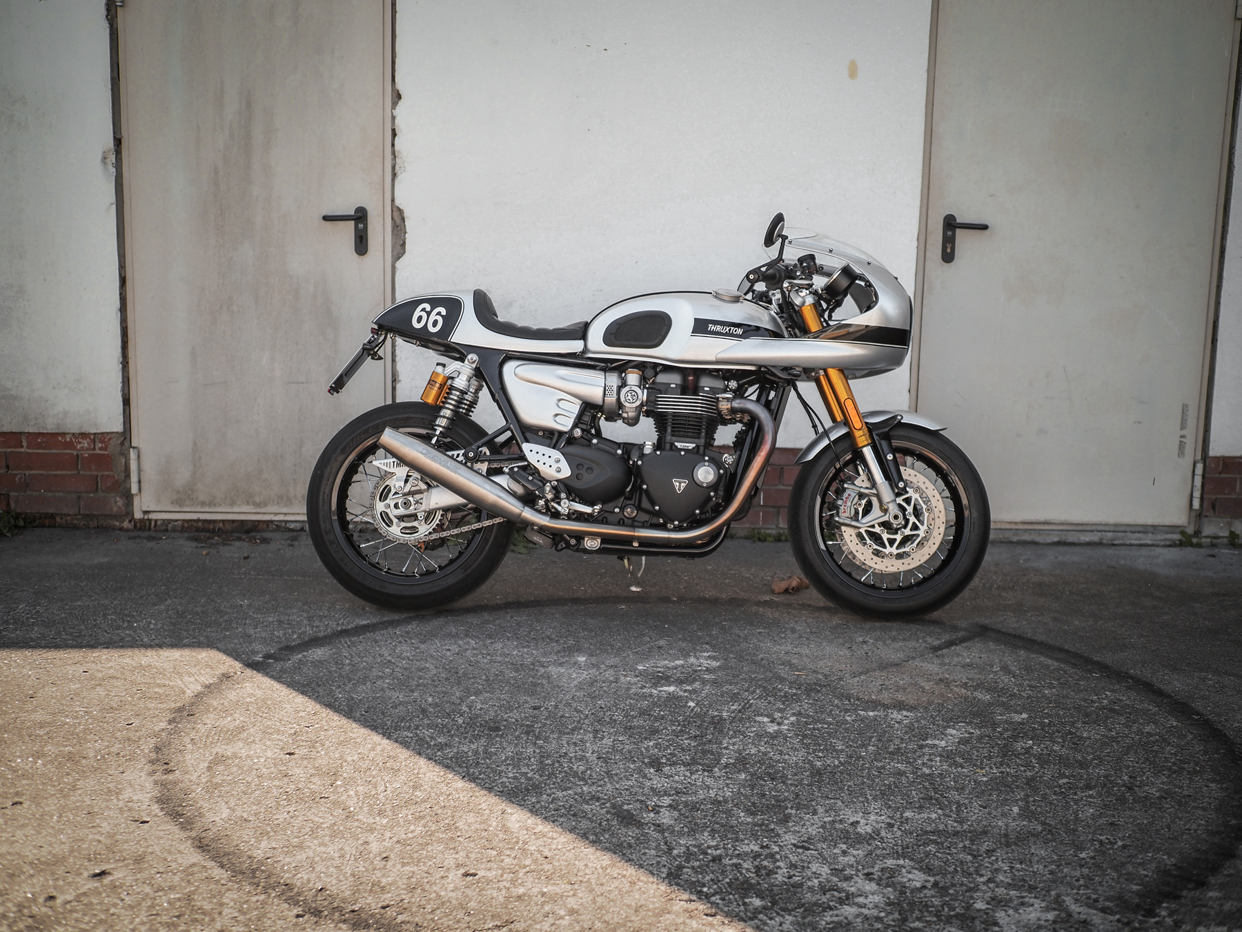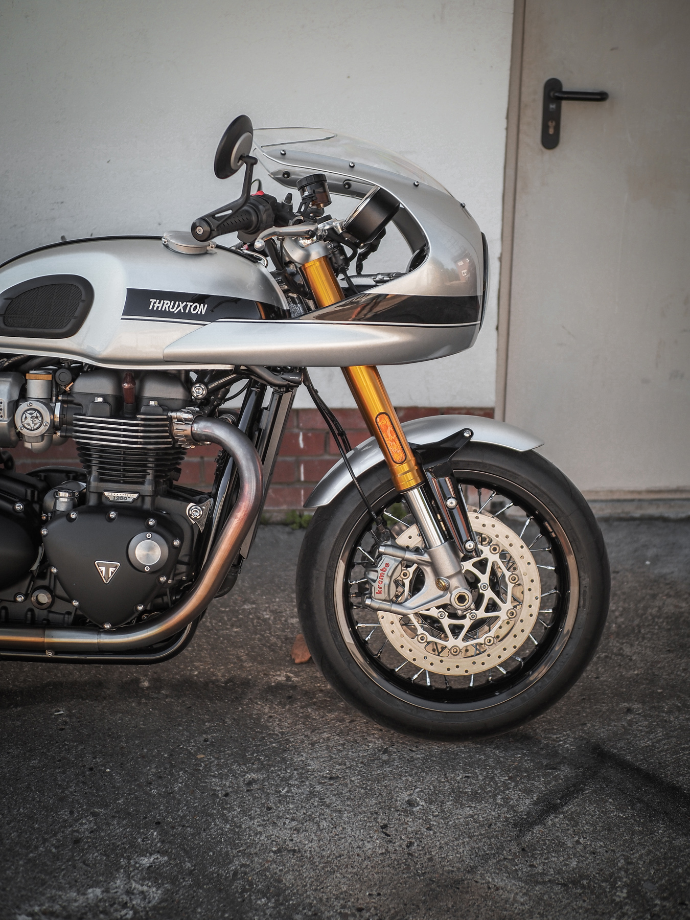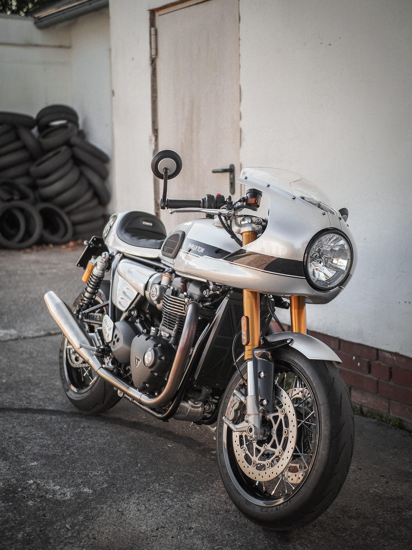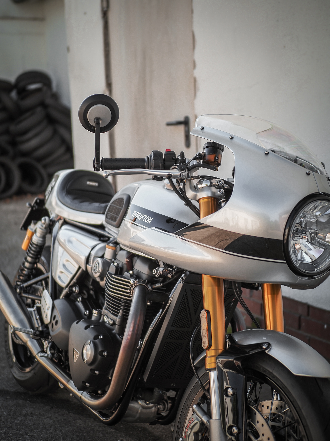 Este semicarenado de la gama de accesorios originales Triumph convierte tu Thruxton 1200 en una auténtica cafe racer clásica.