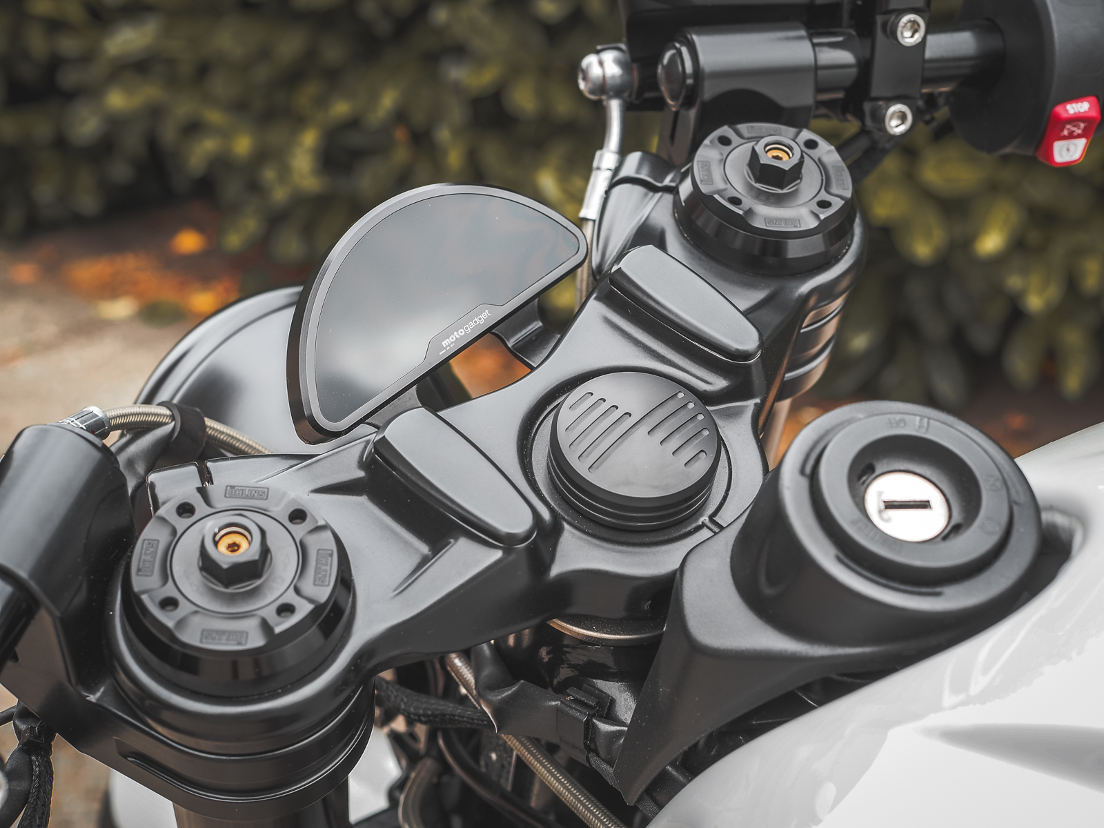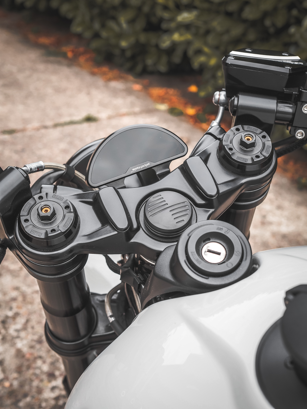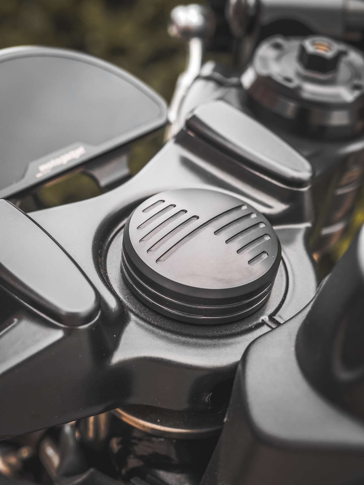 L'écrou de tête de guidon d'origine des R9T n'est pas très esthétique. Le remplacer est assez compliqué, car il faut démonter le guidon.