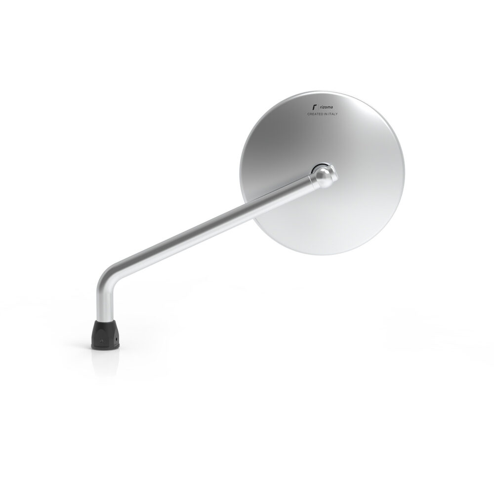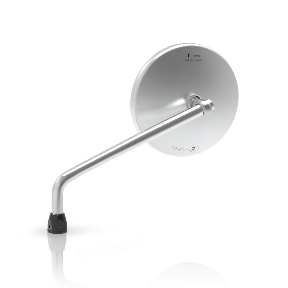 Le miroir est fabriqué en aluminium billette de très haute qualité selon un procédé 3D. La surface de tous les miroirs Rizoma est unique grâce à sa fine structure fraisée. On remarque et on voit au premier coup d'œil la qualité supérieure de ces rétroviseurs. Le miroir One est le classique de la gamme Rizoma. Il séduit par sa forme ronde absolument classique et par son bras de fixation joliment filigrané.