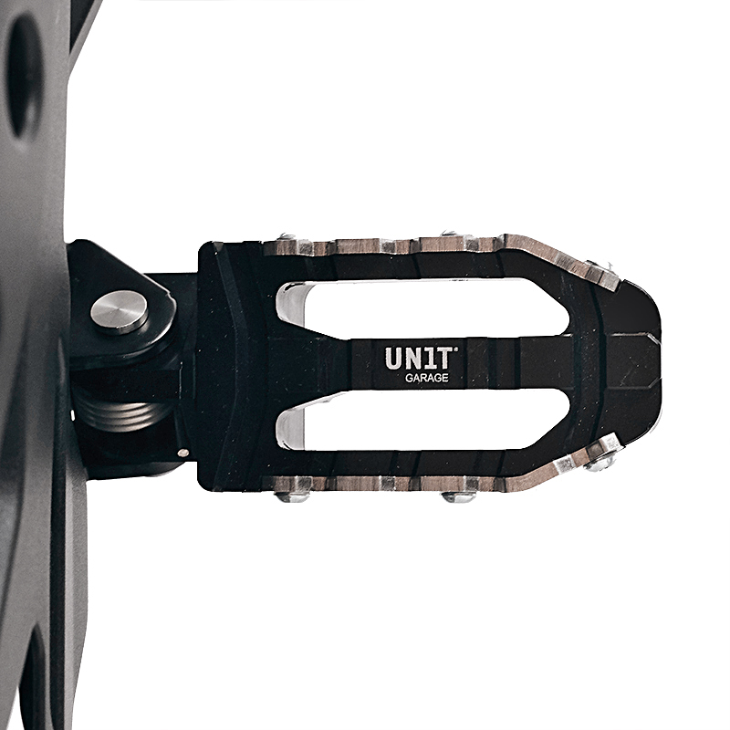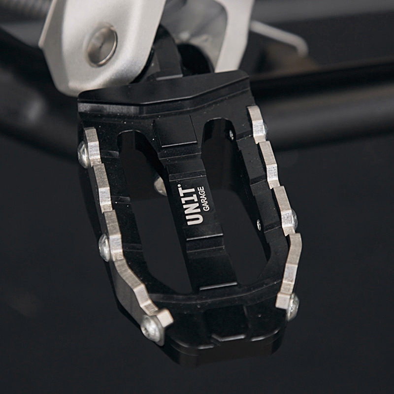 Le pedane da rally fresate CNC di Unit Garage sono l'upgrade perfetto per la vostra BMW R12 G/S, sia dal punto di vista tecnico che estetico.