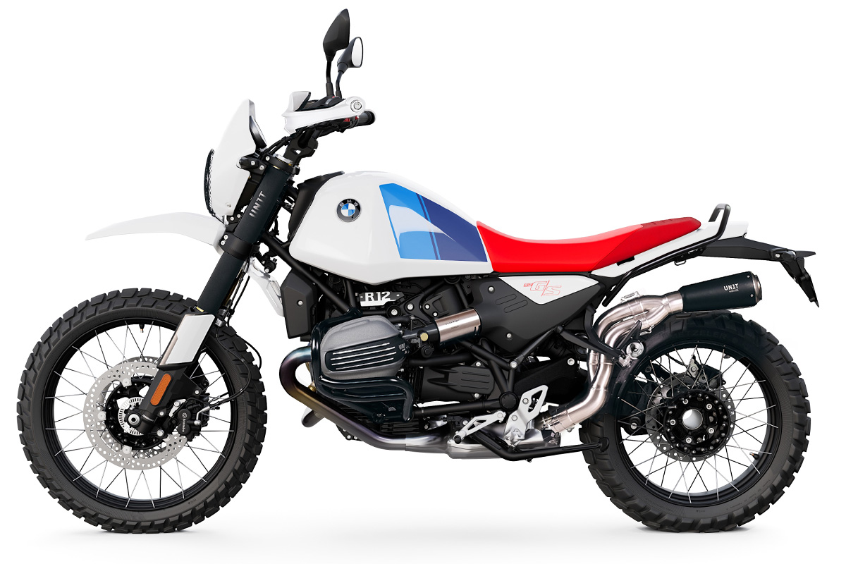 Se volete un suono ancora più intenso, vi consigliamo il collettore in titanio Unit Garage senza KAT. Poiché i modelli R12 sono dotati di un catalizzatore molto grande, che inghiotte anche molto rumore, la moto non può diventare più rumorosa senza un altro silenziatore posteriore.