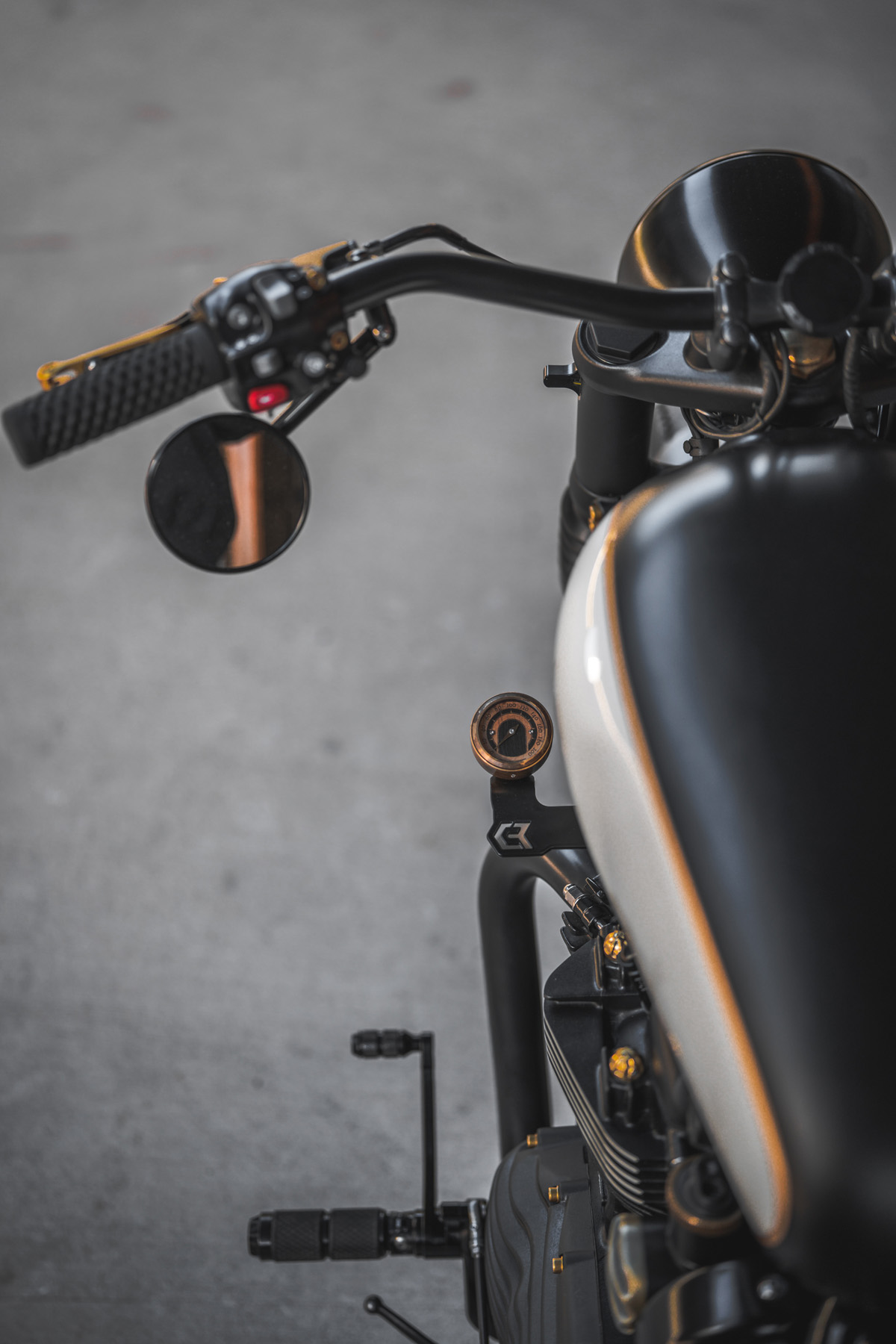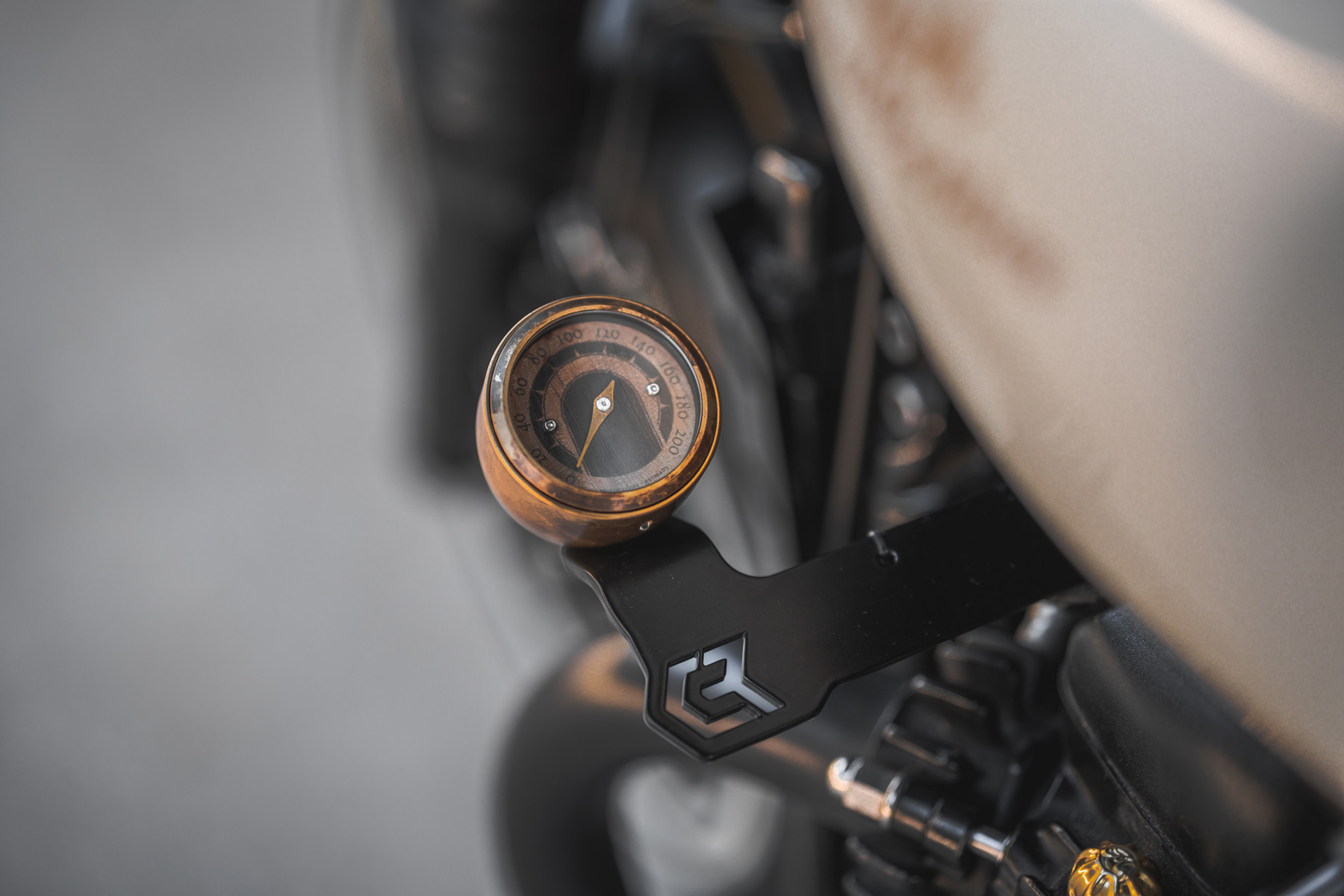 Lo spostamento del tachimetro sul lato ricorda molto le conversioni dei Bobber della vecchia scuola degli anni '70.